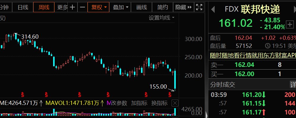 跌幅创历史,全球快递巨头大跌21%!美股“大空